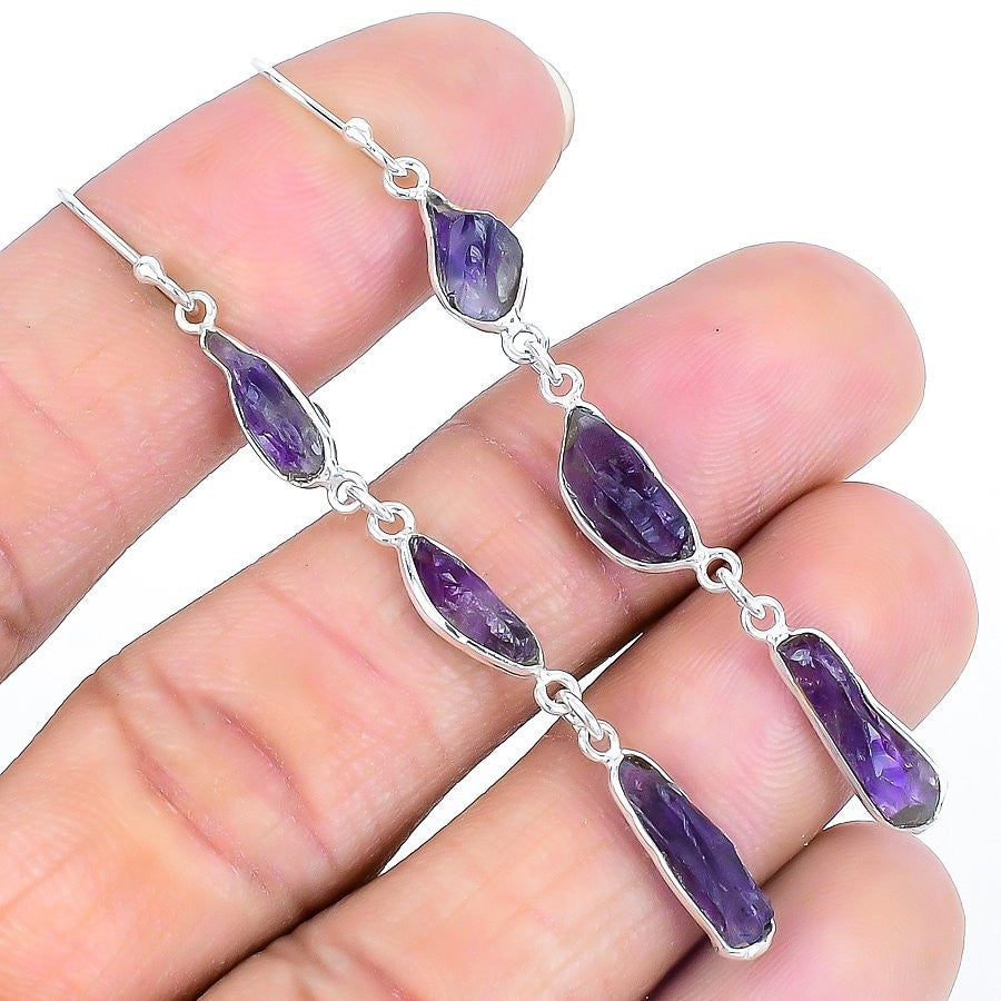 Natural Amethyst Druzy 925 Sterling Silver Dangling Anniversary Earrings Jewelry