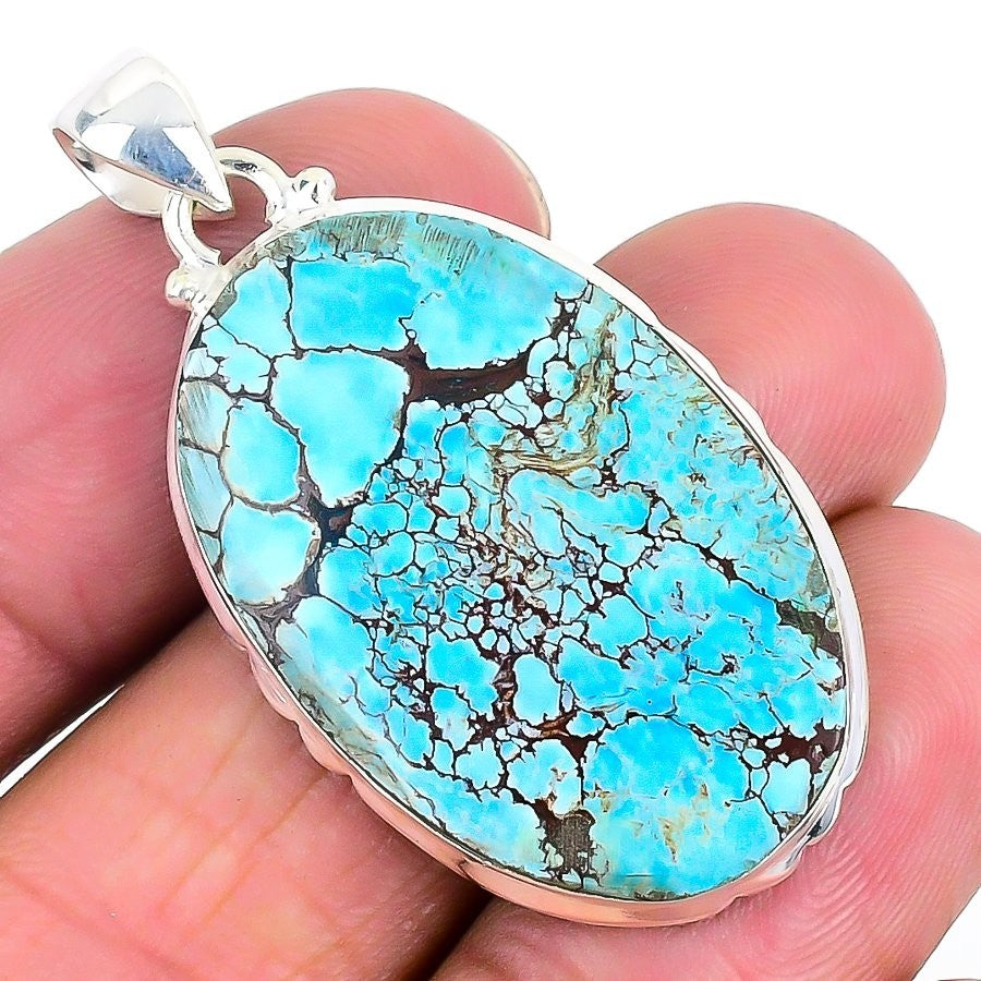 Throat Chakra Tibetan Turquoise Stone Channel Set Wife Trendy Pendant 925 Silver
