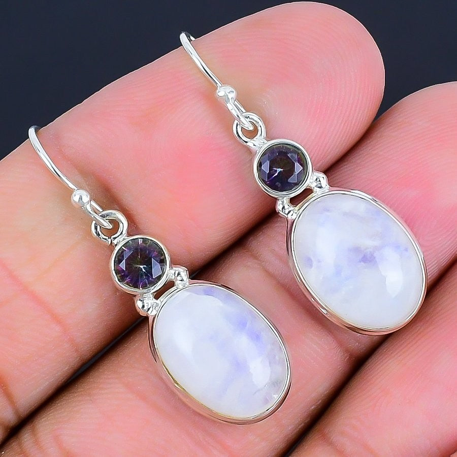 Rainbow Moonstone Stone Drop Dangle Wife Earrings Jewelry 925 Sterling Silver