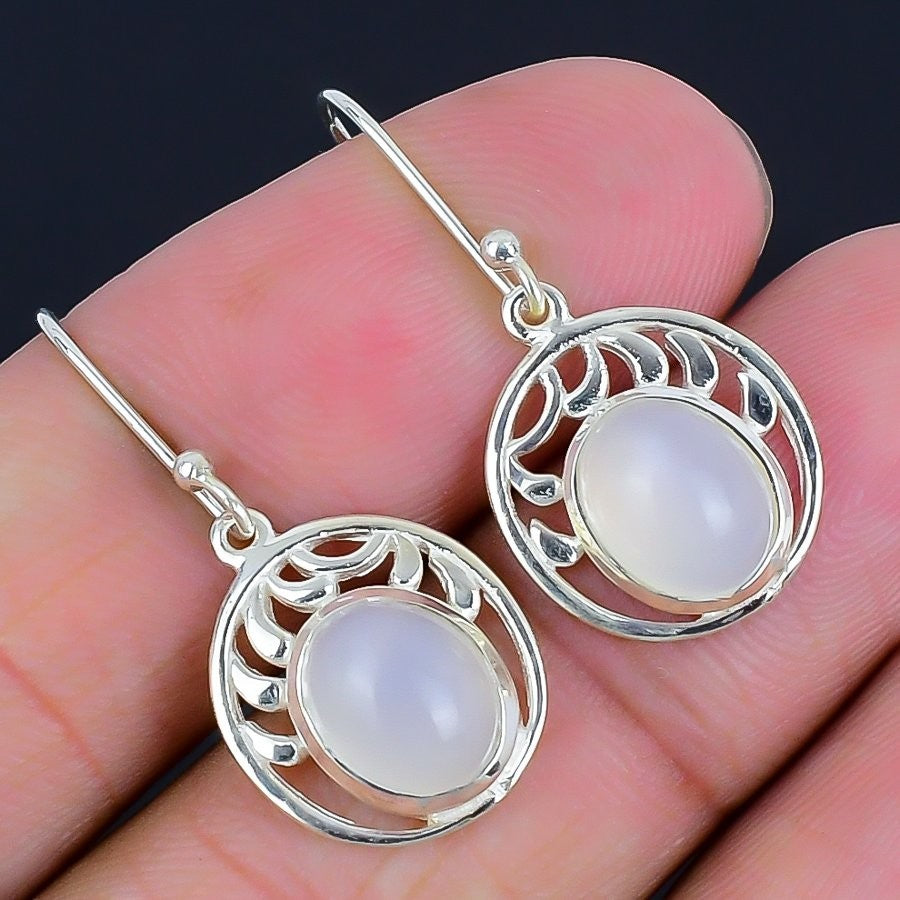 Natural Moonstone Solid Silver Anniversary Daughters Day Dangle Drop Earrings
