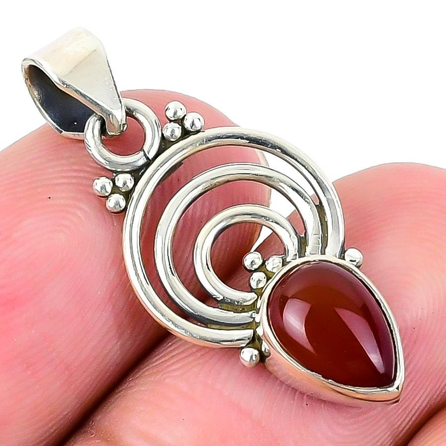 Natural Red Carnelian Solid Sterling Silver Engagement Trendy Pendant Jewelry