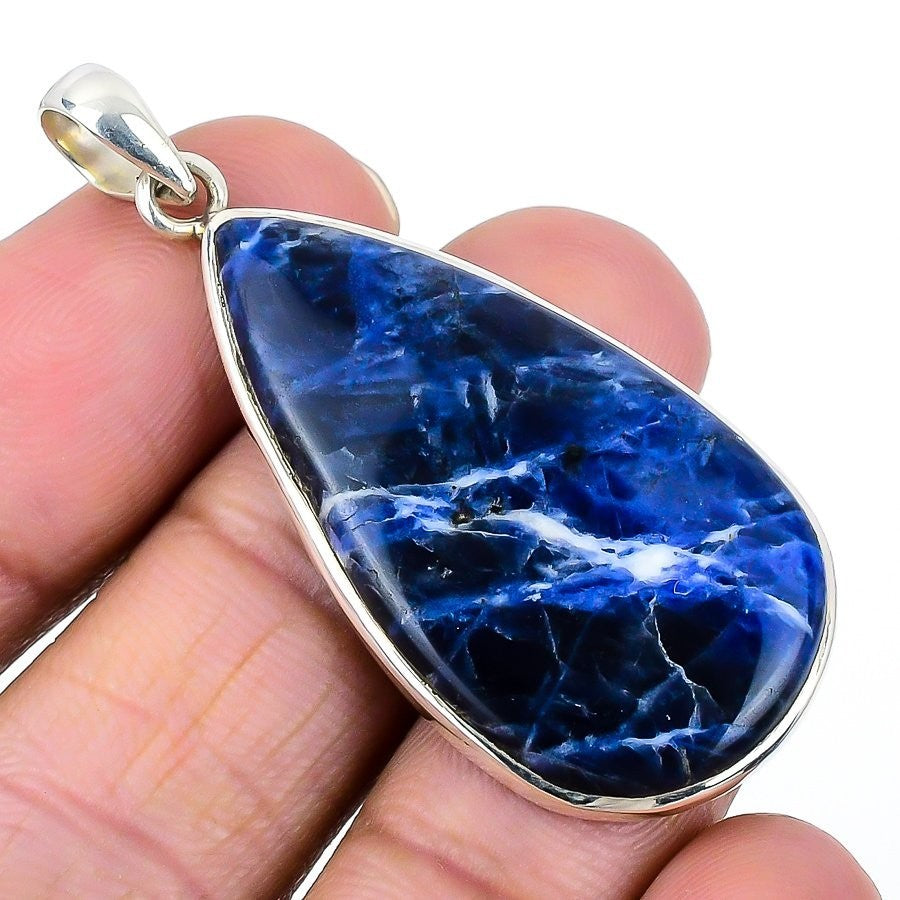Third Eye Chakra Natural Sodalite Birthday Daughter New Pendant 925Ā SolidĀ Silver