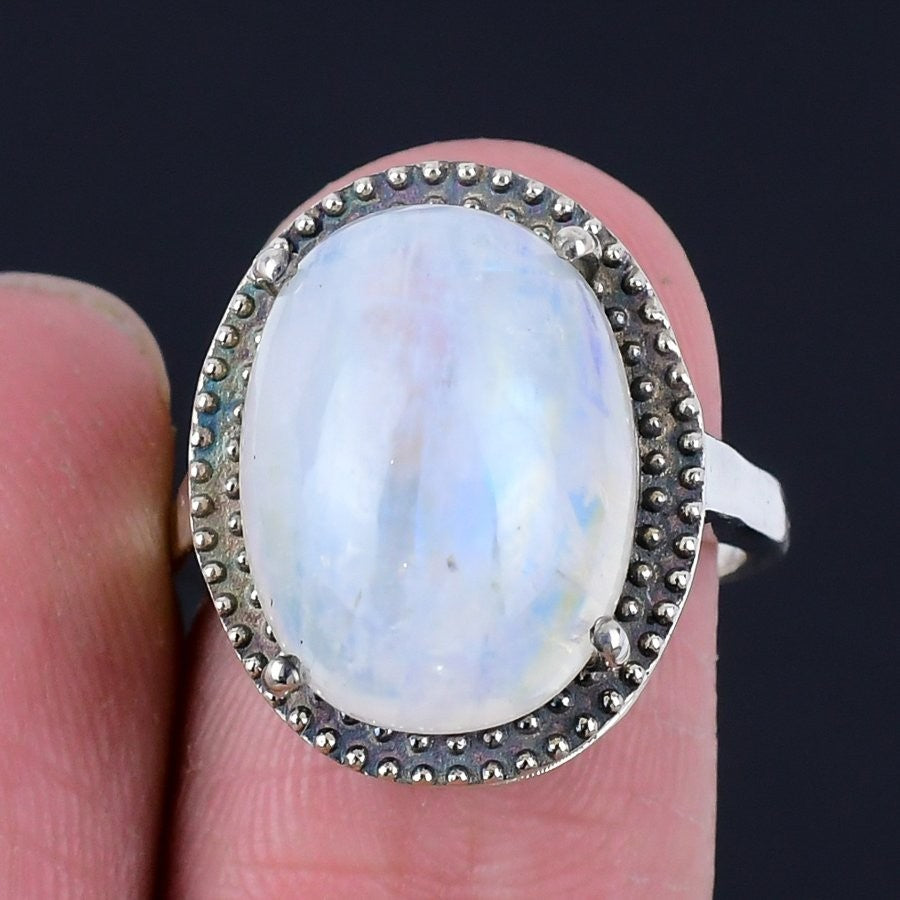 Rainbow Moonstone Gemstone Solid Silver Cluster Channel Set Ring Jewelry Size 7