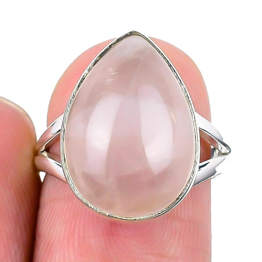 Rose Quartz Gemstone Statement Wedding Ring Jewelry Size 7 Solid Sterling Silver