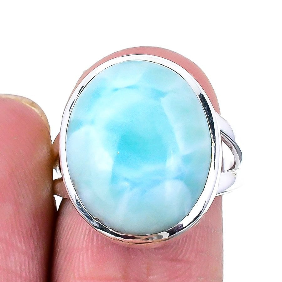 Republic Larimar Gemstone 925Ā SolidĀ Silver Art Deco Cluster Ring Jewelry Size 7