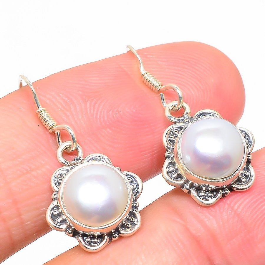 River Pearl Gemstone Solid Sterling Silver Drop Daughter Gift Earrings Jewelry