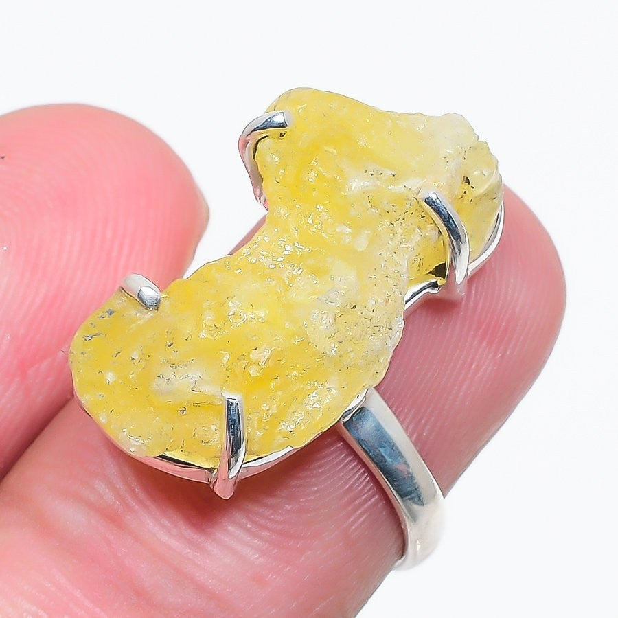 Lemon Druzy Gemstone 925 Sterling Silver Daughter Unique Statement Ring Size 7