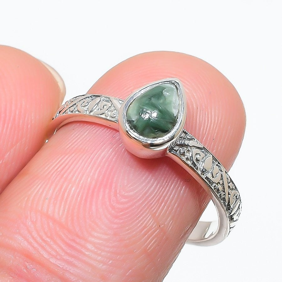 Natural Seraphanite Solid Sterling Silver Engagement Cluster Unique Ring Size 9