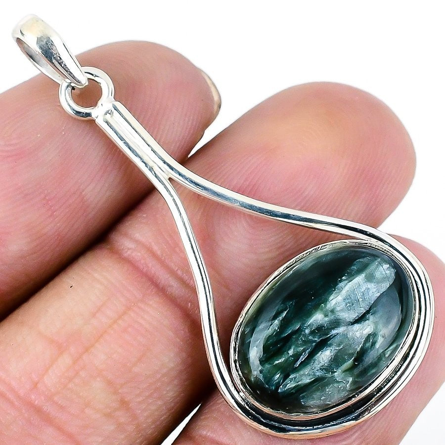 Natural Seraphinite Solid Silver Wedding Daughters Day Birthday Pendant Jewelry