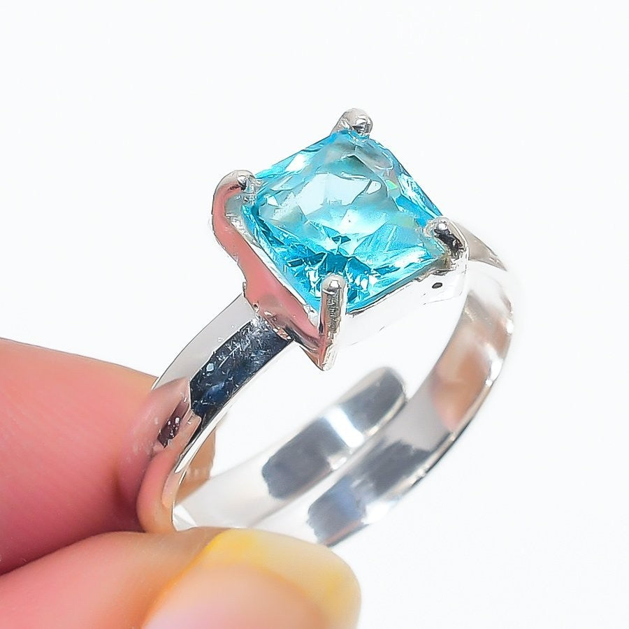 Swiss Blue Topaz Gemstone Birthday Statement Daughter Gift Ring Sterling Silver