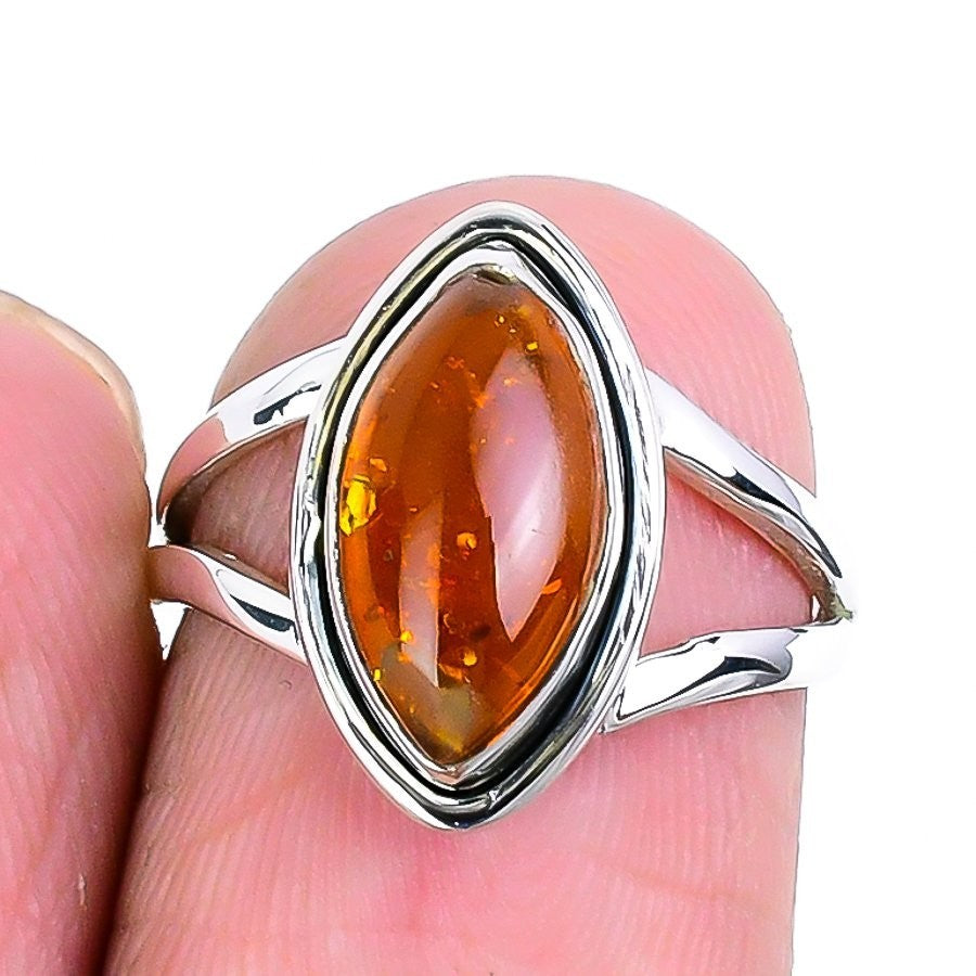 Natural Baltic Amber 925Ā SolidĀ Silver Boho Cluster Daughter Ring Jewelry Size 6