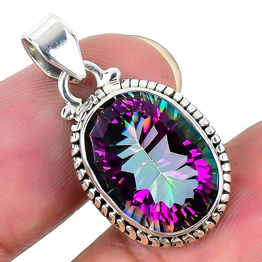 Rainbow Mystic Topaz Gemstone 925Ā SolidĀ Silver Engagement Bezel Mother Pendant