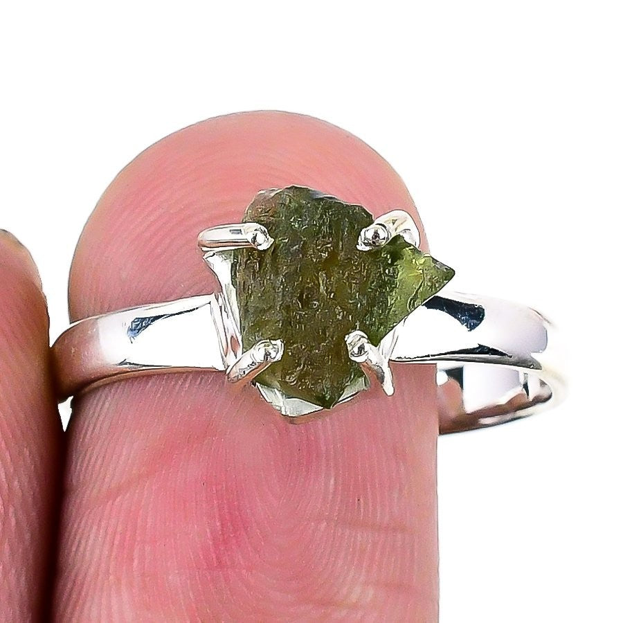 Natural Moldavite Quartz Solid Sterling Silver Statement New Ring Jewelry US 0.5