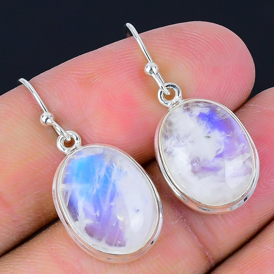 Natural Rainbow Moonstone 925 Silver Ethnic Dangle Drop Hook Earrings Jewelry