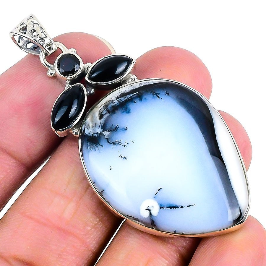 Dendrite Opal Stone Sterling Silver Anniversary Engagement New Pendant Jewelry