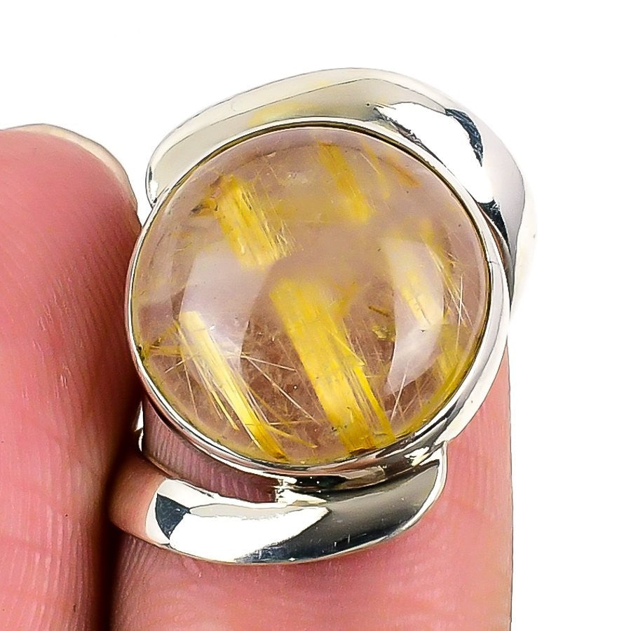 Golden Rutile Stone 925 Sterling Silver Daughters Day Statement Handcrafted Ring