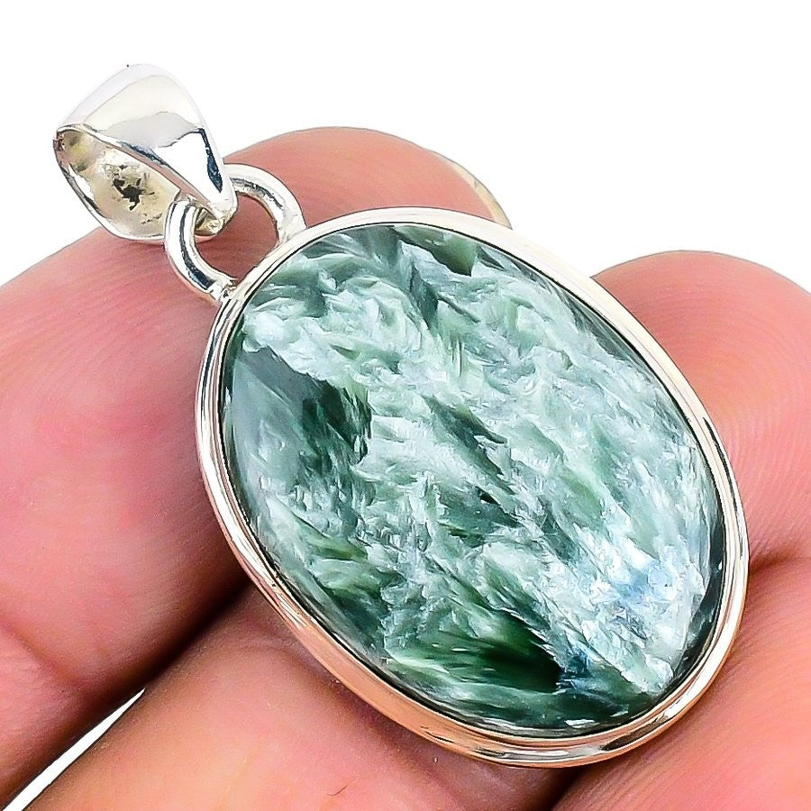 Natural Seraphinite 925 Sterling Silver Elegant Daughters Day Bezel New Pendant