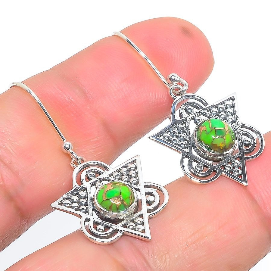 Natural Copper Green Turquoise 925 Silver Dangle Drop December Earrings Jewelry