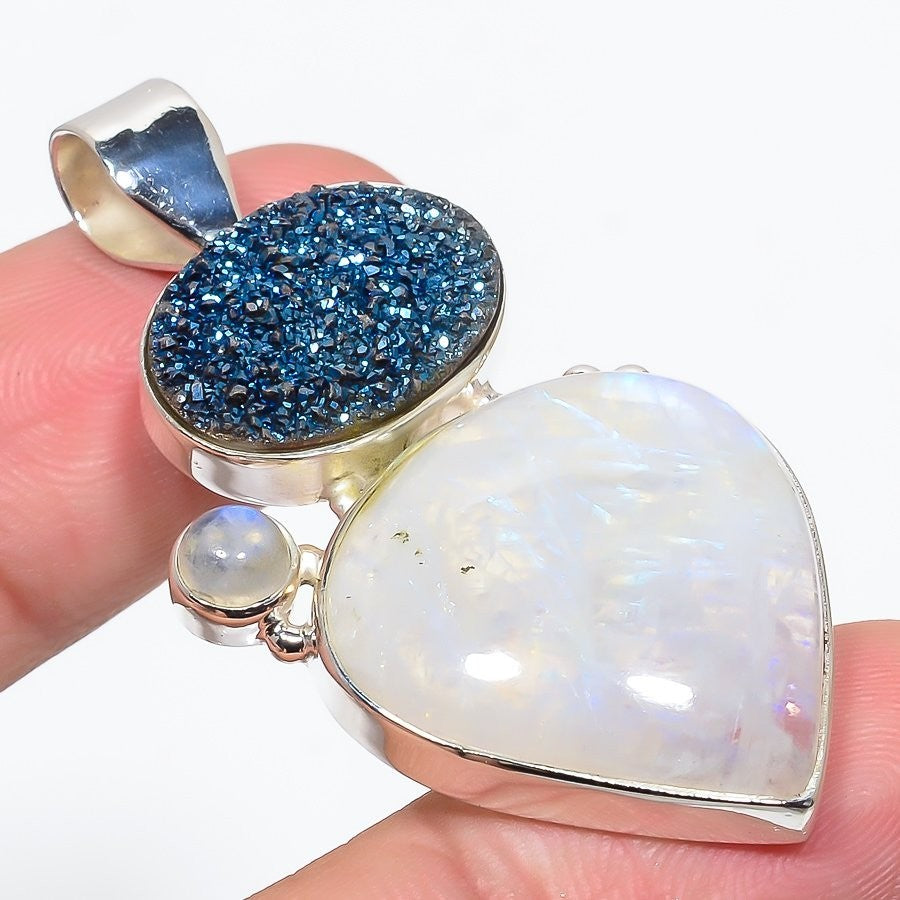 Crown Chakra Rainbow Moonstone Stone 925 Silver Sister Daughter Gift New Pendant