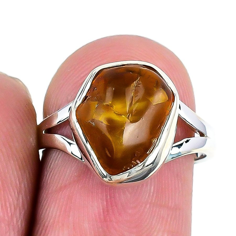 Baltic Amber Stone Solid Sterling Silver Statement Birthday Ring Jewelry US 7
