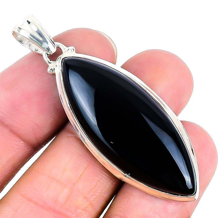 Natural Black Onyx Anniversary Bezel Engagement Pendant Jewelry Sterling Silver