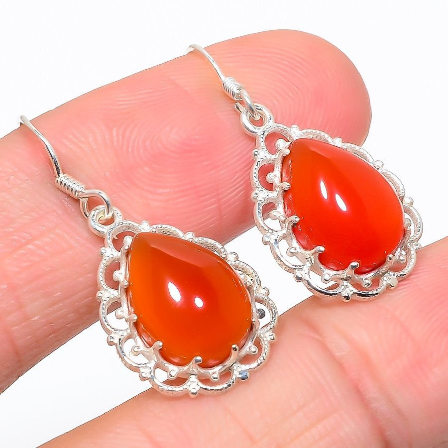 Natural Red Carnelian 925 Silver Engagement Wedding Dangle Drop Earrings Jewelry