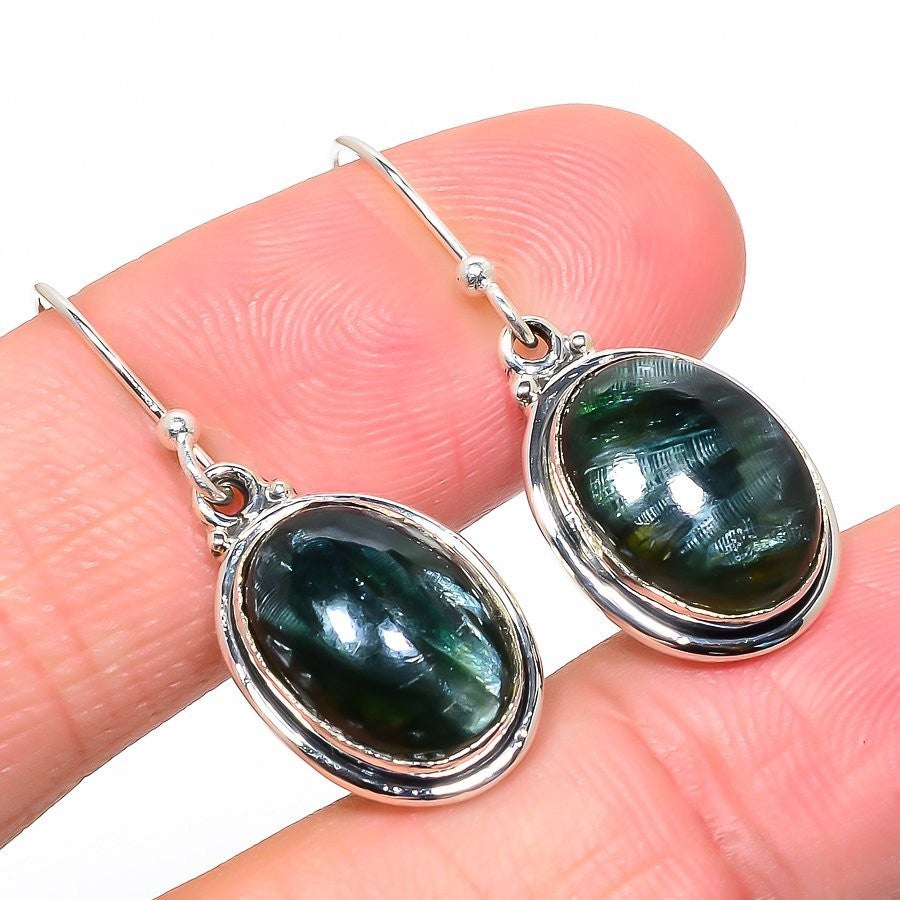 Seraphanite Stone Sterling Silver Elegant Dangling Hook Sister Earrings Jewelry