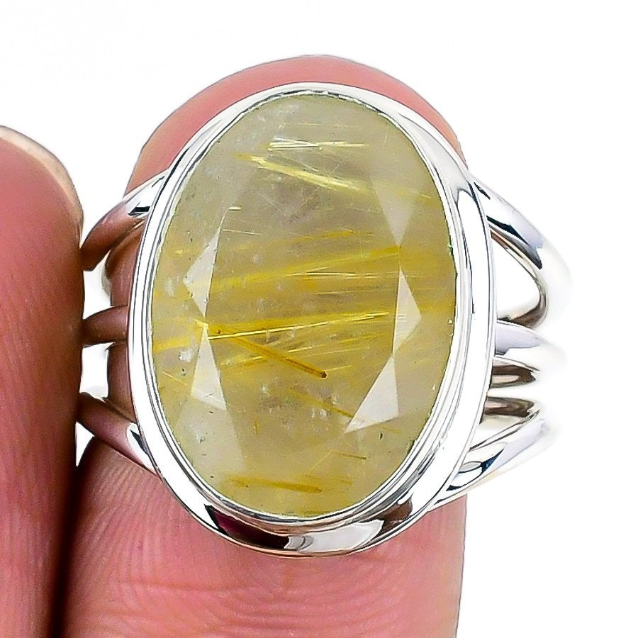 Golden Rutile faceted Stone 925 Sterling Silver Wedding Statement Ring Jewelry