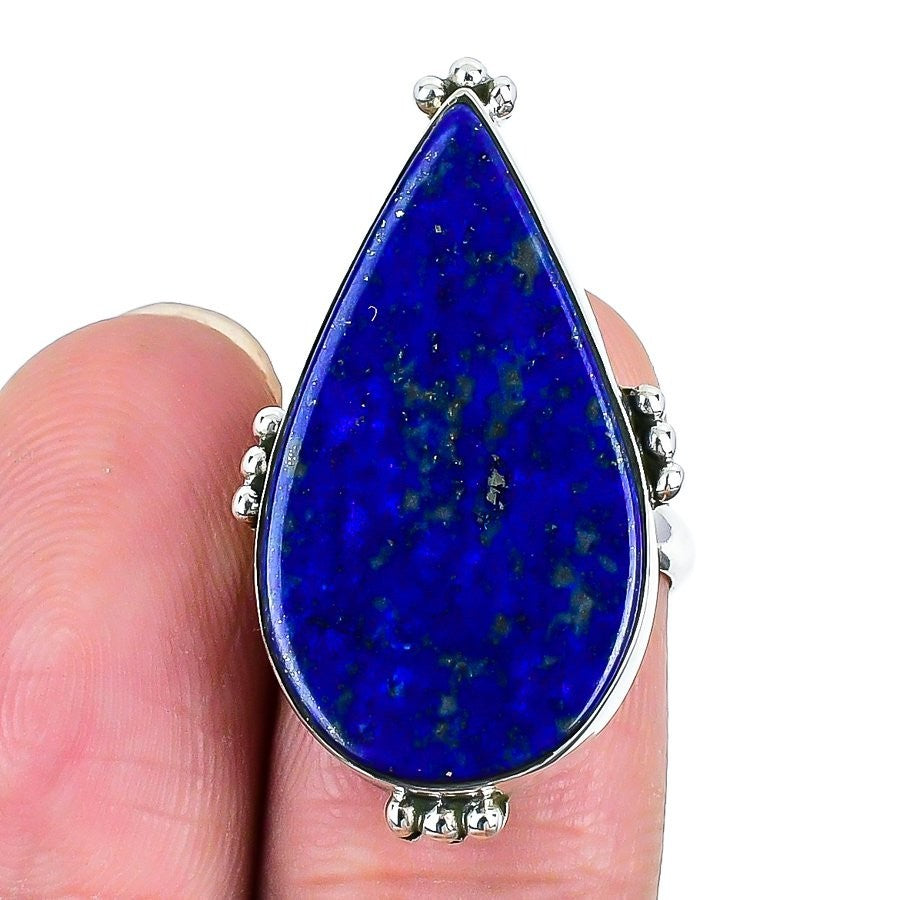 Lapis Lazuli Gemstone 925 Silver Statement Throat Chakra Bezel Ring Jewelry US 6
