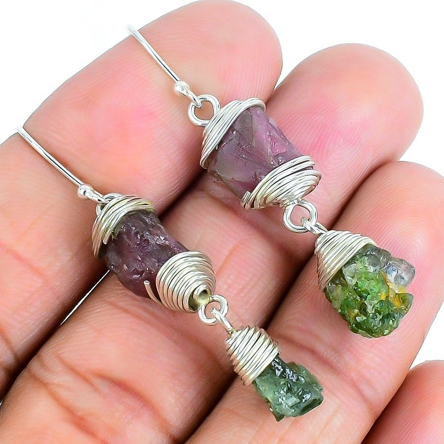 October Natural Tourmaline rough Sterling Silver Handmade Dangling Boho Earrings