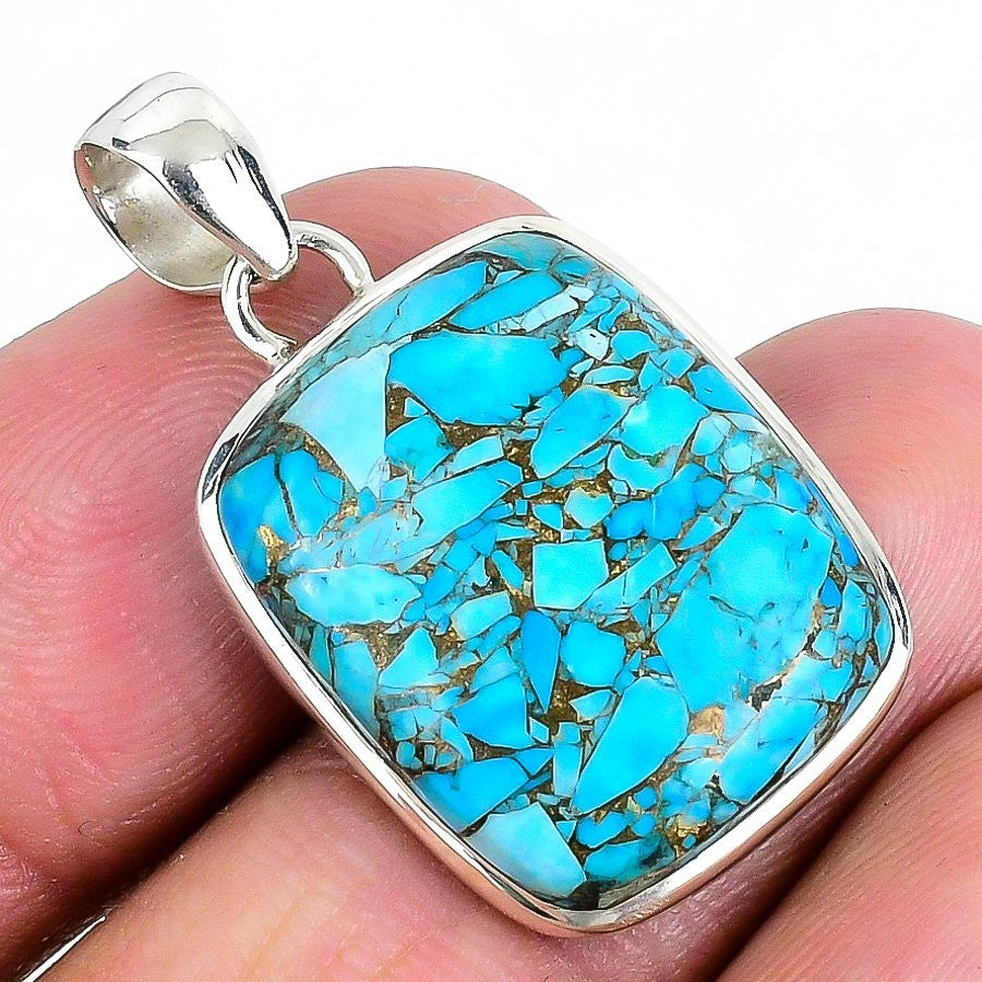 Daughters Day Deal Natural Copper Blue Turquoise Pendant Solid Sterling Silver