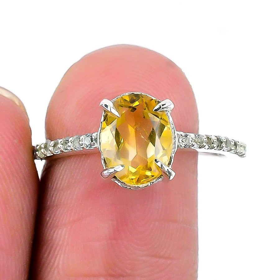 Daughters Day Deal Citrine Gemstone Solid Silver Statement Ring Jewelry Size 9.5