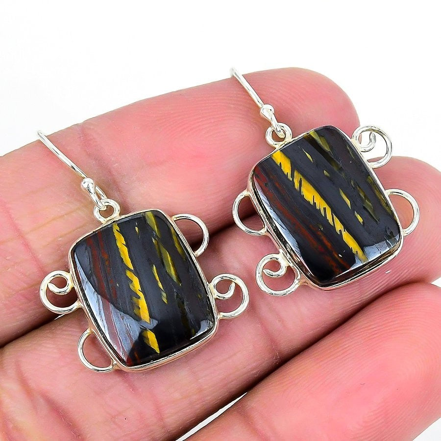Tiger Eye Stone Solid Sterling Silver Ethnic Hook Sister Dangle Drop Earrings