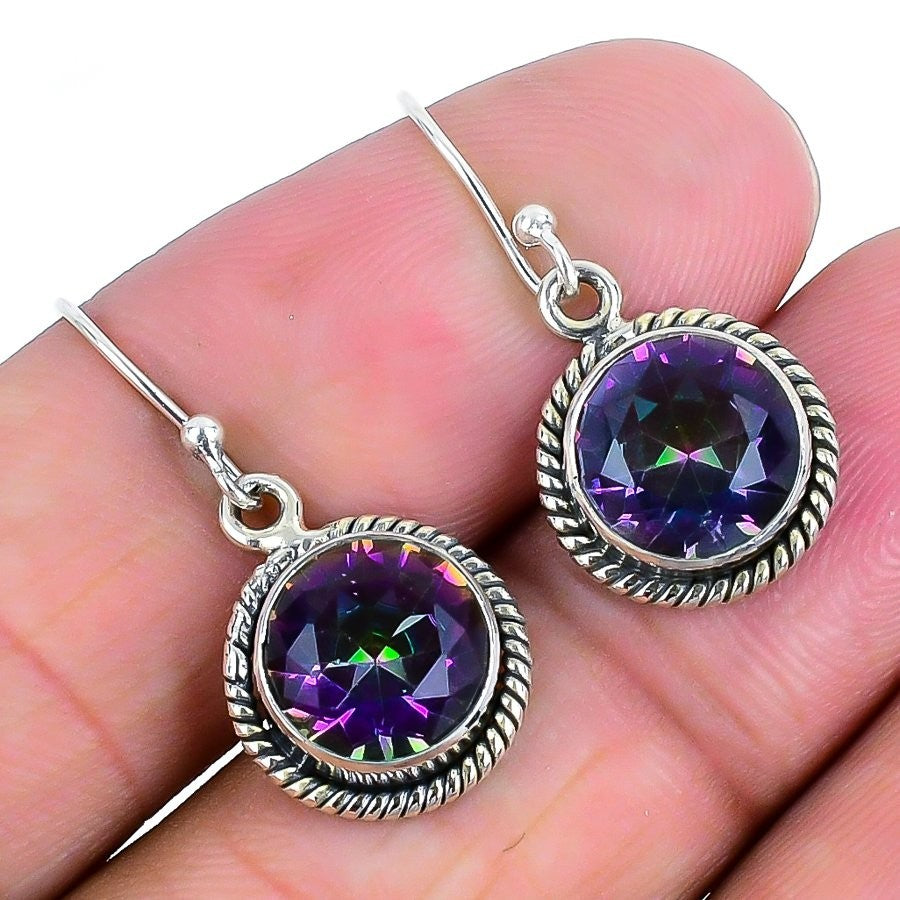 Mystic Topaz Stone 925 Sterling Silver Bezel Dangle Best Daughters Gift Earrings