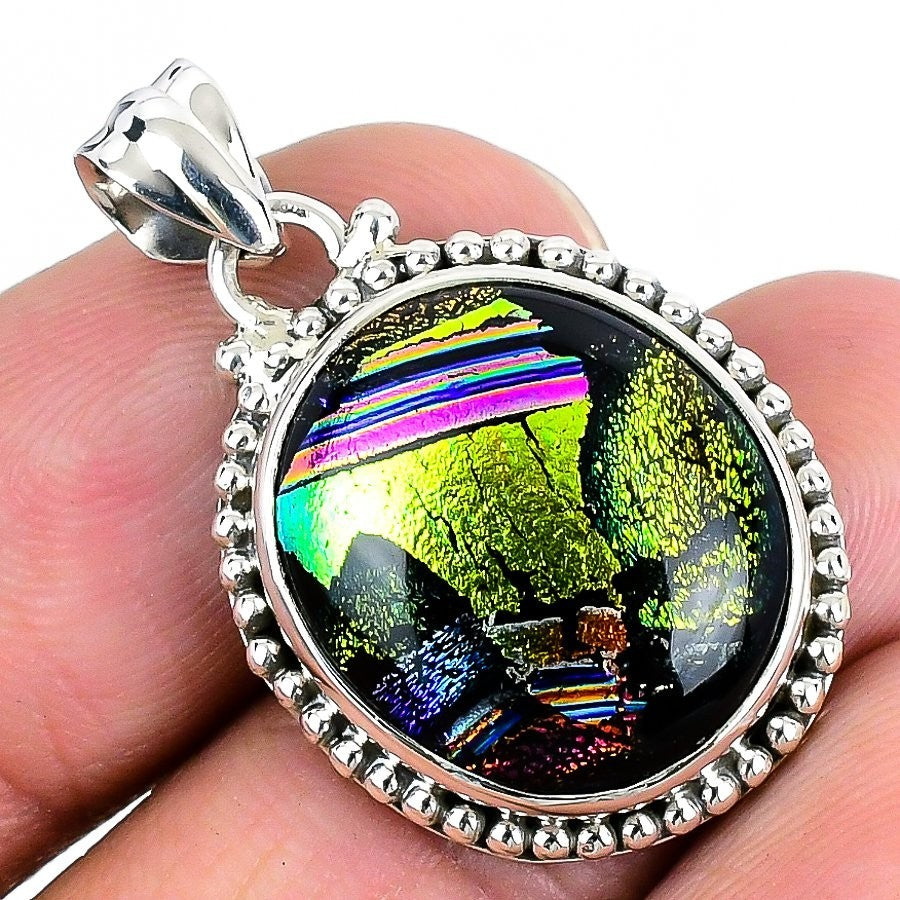 Mexican Dico Glass Gemstone Solid Sterling Silver Handmade Birthday Wife Pendant