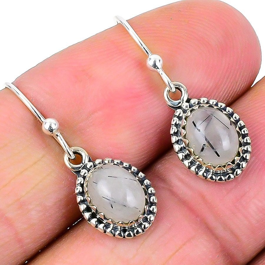 Daughters Day Sale Black Rutile Gemstone Drop Dangle Wife Earrings Solid Silver