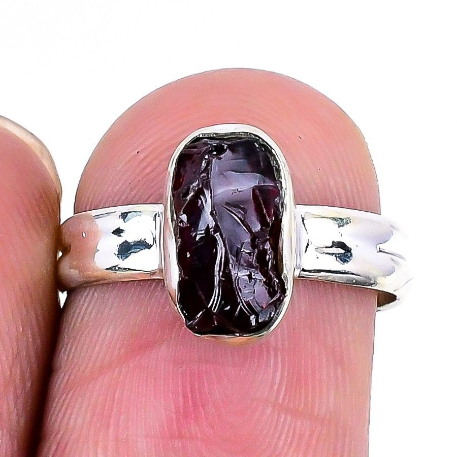 Garnet Rough Gemstone Sterling Silver Statement January Ring Jewelry Size 6.5