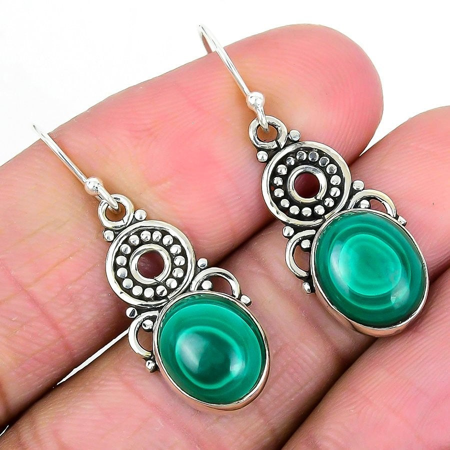 Malachite Stone 925 Sterling Silver Dangle Handmade Channel Set Trendy Earrings