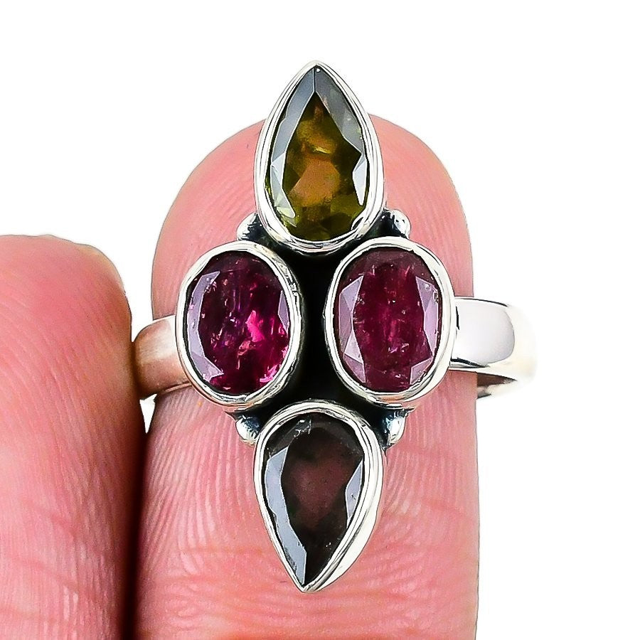 Pink Tourmaline Stone Solid Sterling Silver Birthday Statement Ring Jewelry US 8