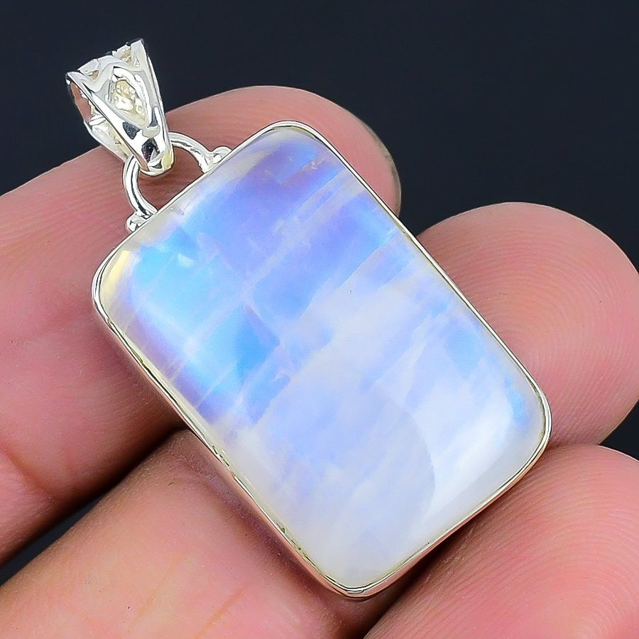 June Natural Moonstone 925 Solid Silver Birthday Channel Set Sister Boho Pendant