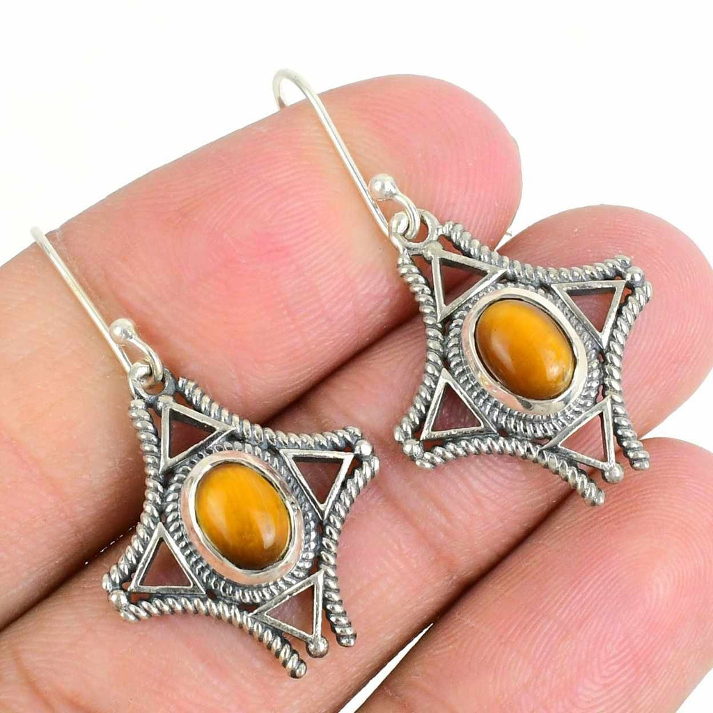 Natural Tiger Eye Anniversary Hook Drop Mother Earrings Jewelry 925 Solid Silver