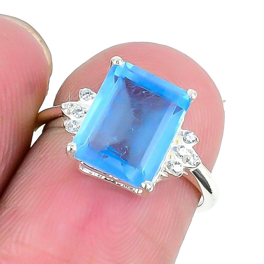 Natural Swiss Blue Topaz Cluster Daughters Day Ring Size 6 Solid Sterling Silver