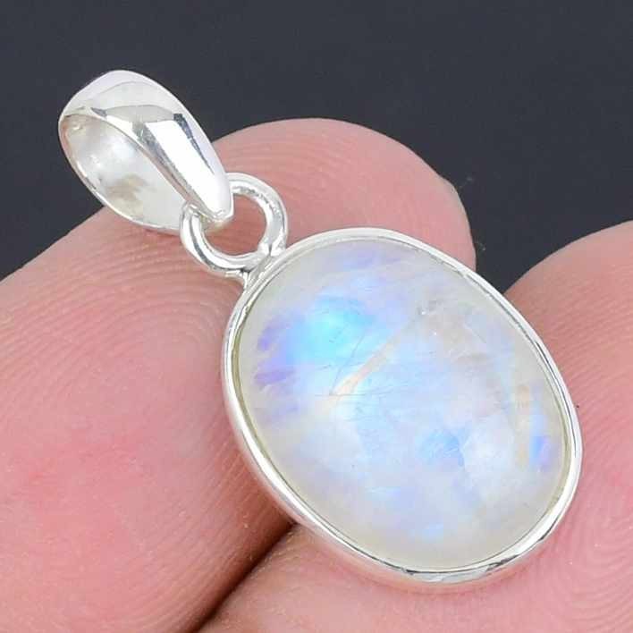 Natural Rainbow Moonstone 925 Solid Silver Engagement Sister Artisan New Pendant