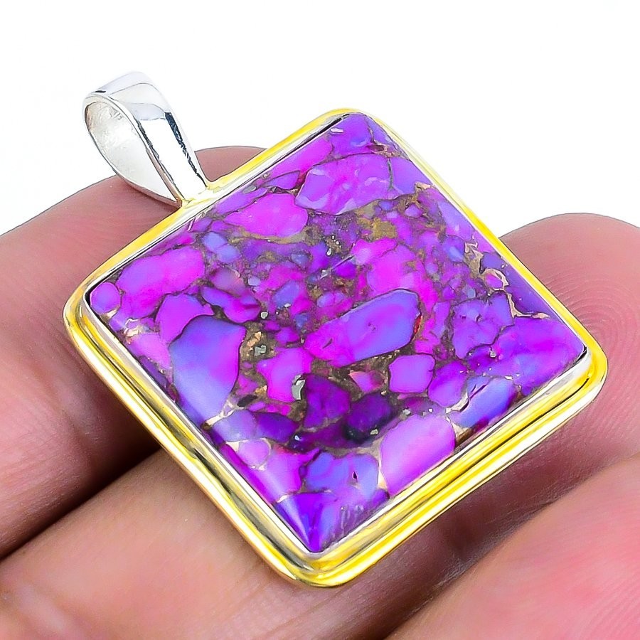 Copper Pink Turquoise Gemstone December Wedding Pendant Solid Sterling Silver