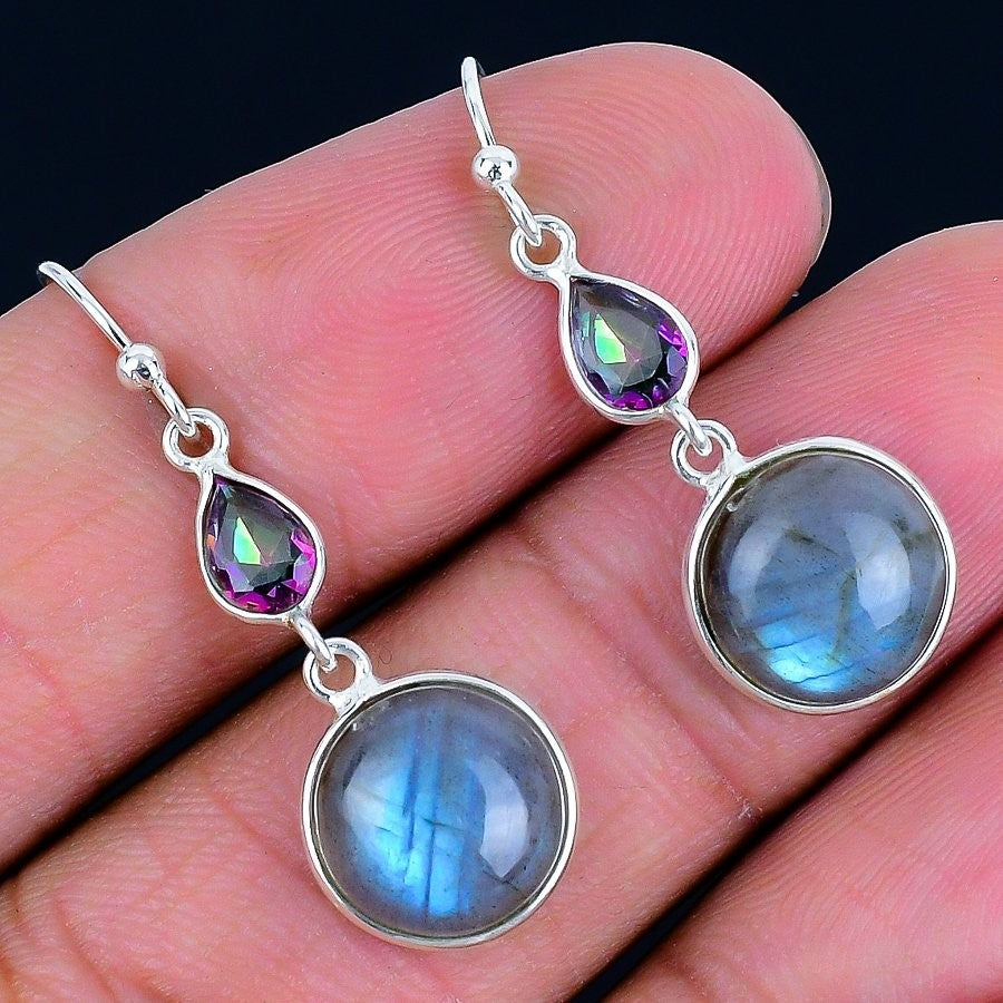 Labradorite Gemstone Sterling Silver New Dangling Daughter Gift Elegant Earrings