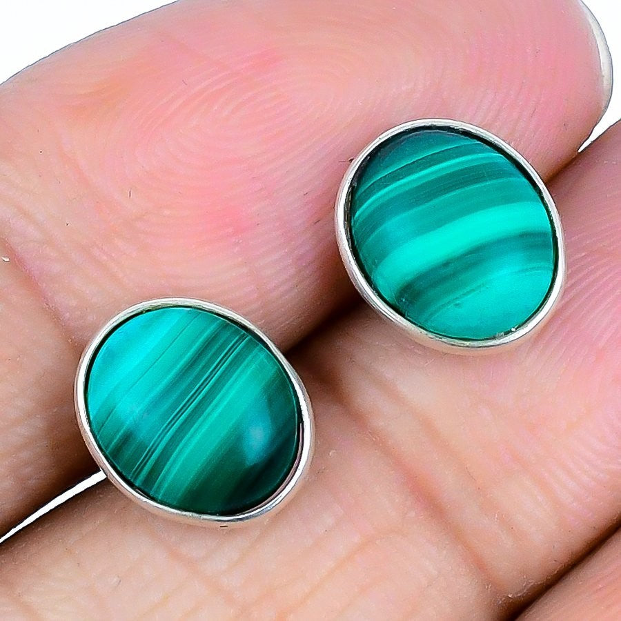 Malachite Gemstone Solid Silver Stud Post Birthday Heart Chakra Trendy Earrings