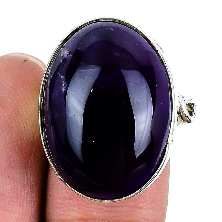 Sage Amethyst Stone Boho Statement Elegant Ring Jewelry Size 7.5 Sterling Silver