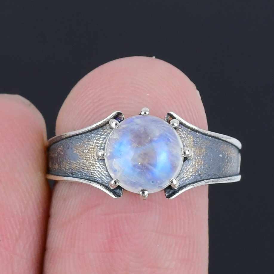 Rainbow Moonstone Stone Solid Silver Wife Elegant Cluster Ring Jewelry Size 8