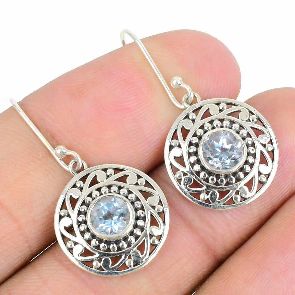 Swiss Blue topaz Stone Dangle Drop Daughter Gift Hook Earrings Sterling Silver