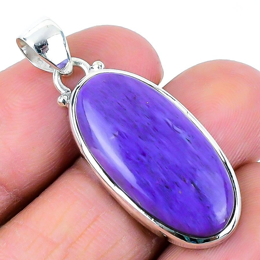 Russian Charoite Stone Birthday Engagement Unique New Pendant Jewelry 925 Silver